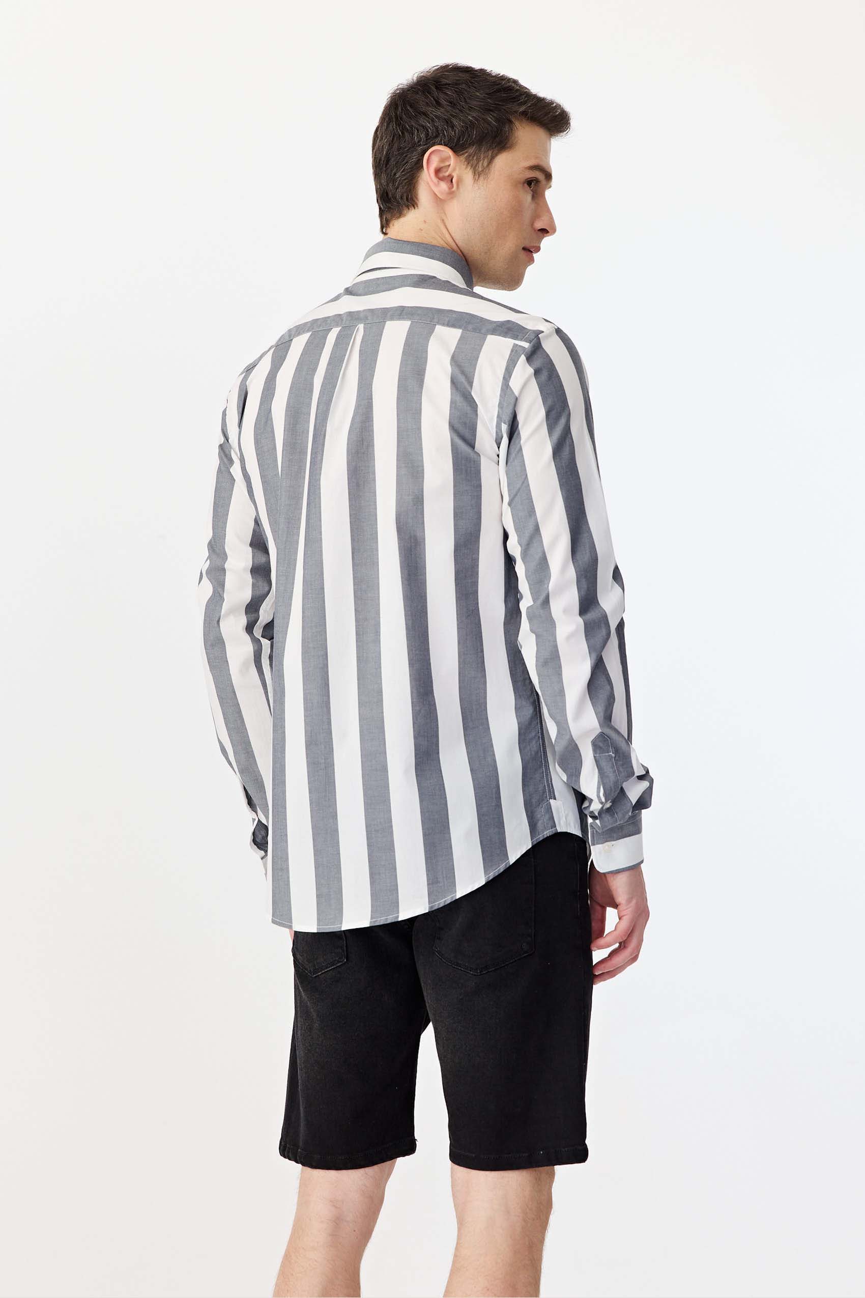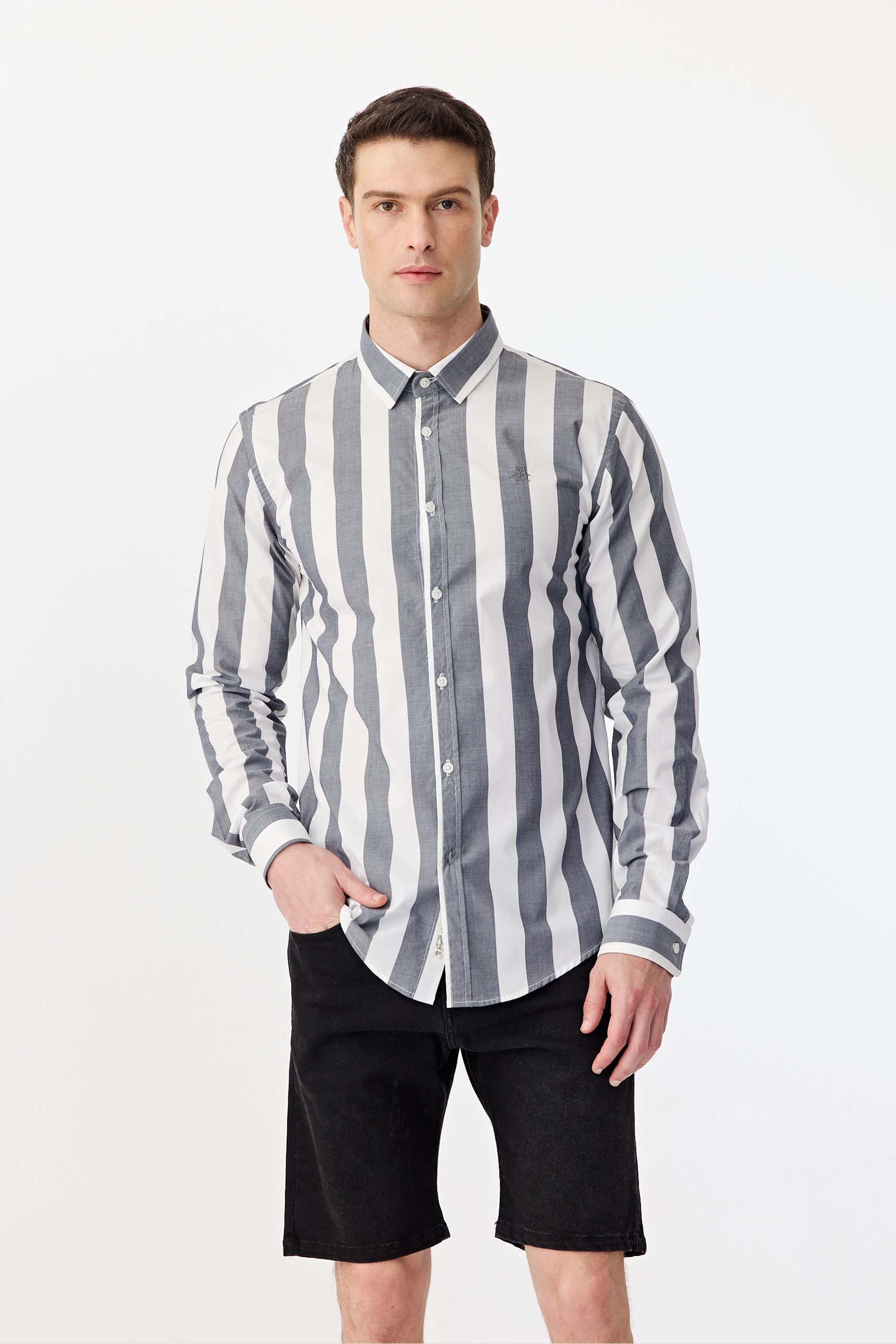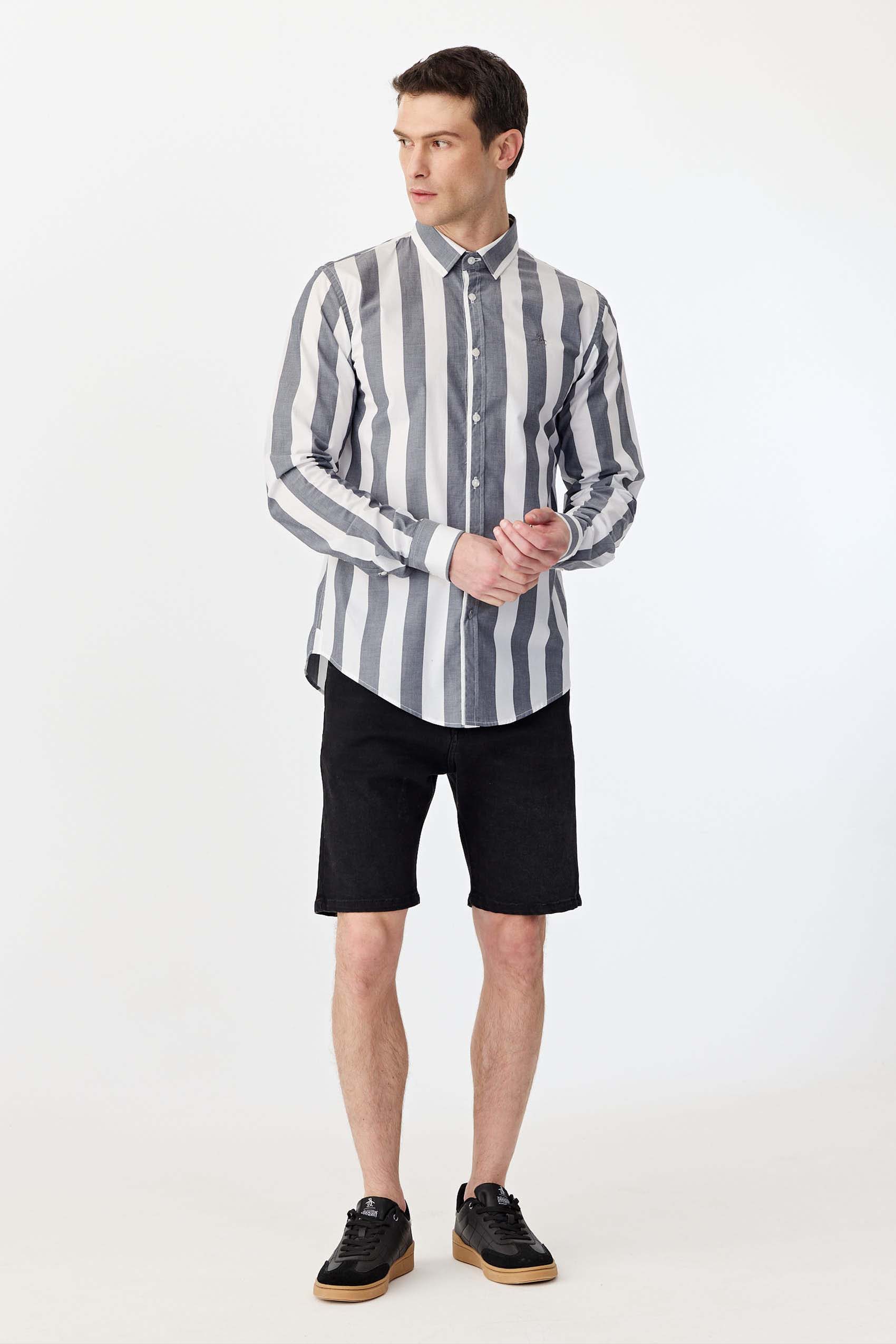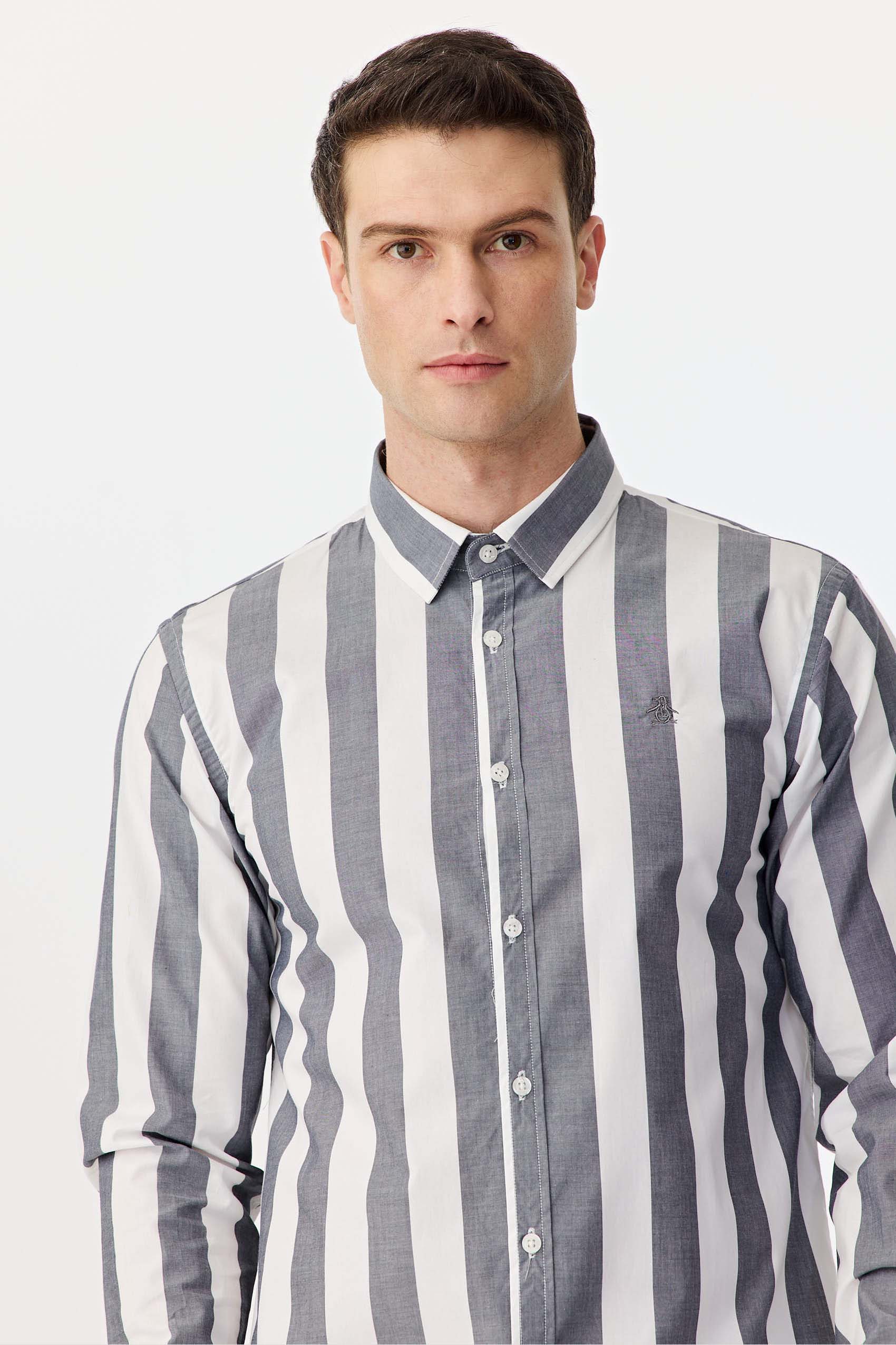 Camisa raya ancha manga larga, realizada en poplín algodón pima. Con logo bordado a tono. Slim fit