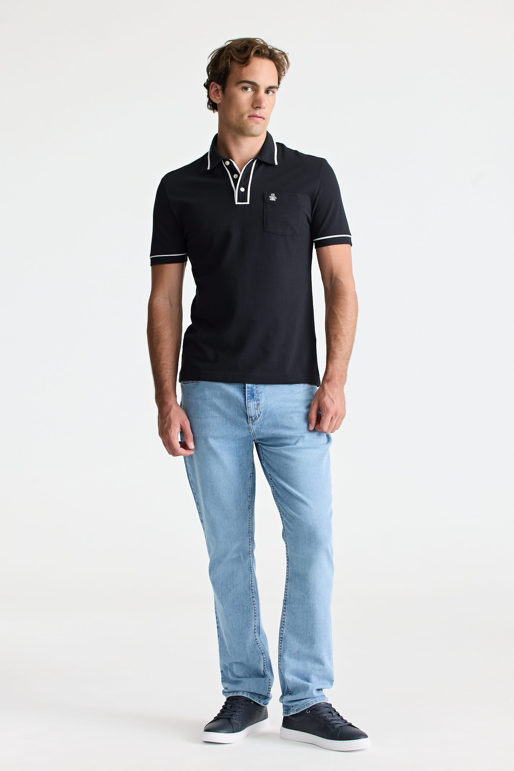 Polo icónica en piqué, con bolsillo y detalles en vivo a contraste, cuello tipo camisero, confeccionado en la misma tela principal para un acabado elegante, incluye un logo parche de pingüino en dos colores, aplicado en el bolsillo, producto importado, de alta calidad y estilo clásico,
